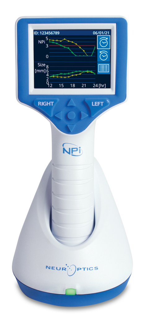Mit dem NPi®-300 Pupillometer von Neuroptics können einfach automatisierte und reproduzierbare Messungen der Pupillengröße, deren Symmetrie, dem Pupillenreflex und der Reaktivität durchgeführt werden. Alle Parameter der Messung werden über einen von NeurOptics entwickelten und validierten Algorithmus im Gerät als NPi® zusammengefasst.